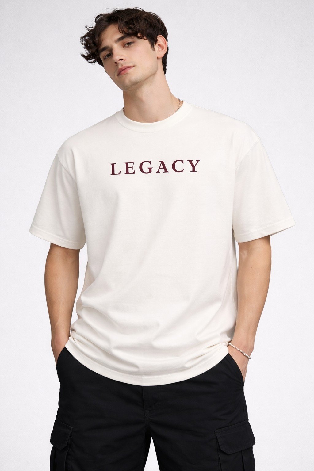 Pair this oversized graphic t-shirt with cargo pants and sneakers for a clean streetwear look. You can also style it with denim jeans or layer it with a jacket for an elevated outfit.